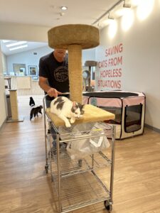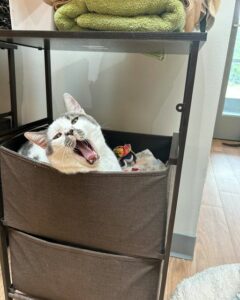 It’s been a little rough with the litter box at times, as I am straining again. But the staff here is on it, and they give me something to help me out. Other than that, I am a happy boy here at Tabby’s Place.