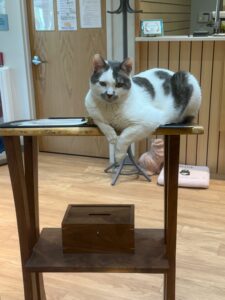 I have been in good health and spirits this month. I am happiest hanging out with Prescott, my true Lobby love. But I would love to hang out with you, too, dear sponsors. I am so grateful for all you do for me and for all the kitties here at Tabby’s Place. I know I am going to be taken care of each and every day, thanks to you.