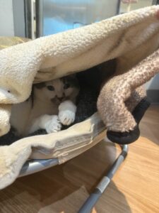 Whew—Spring is sure a busy season. We had Passover and Easter. We had lots of visitors with the warmer weather. We had Mother’s Day, too. Here at the sanctuary, we have both hooman and kitty moms. So we did celebrate. And I hope you celebrated if you are a mom for fur babies or hooman kids. Plus, we had a major event right here, which was a combination open house and a chance to learn for those interested in becoming volunteers.