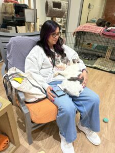 Well, I am sad because the love of my life, dear Prescott, has been moved to the Community Room: her dual citizenship has been revoked, at least for a while. We are managing a small ringworm outbreak here in the Lobby (click here to read more about how we’re handling it).