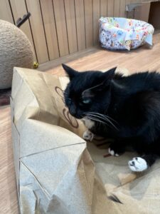Life in the lobby is always more fun and interesting when we have games to play, from the enrichment things the staff provides, like the ripple rug, tunnels, and puzzle feeders, or our own made-up games and toys.
