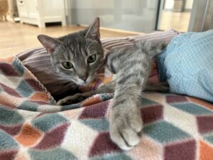 Leonardo is still a bit reserved, so he often keeps to himself, but energetic Kitty Purry is ready for anything and tries to engage Regina in play. Regina is still assessing the situation: Just how far should an established diva involve herself with a potentially competitive young ingenue who, for now, seems to adore her? The jury is still out while Regina makes up her mind.