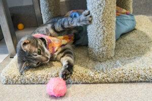 Regina now has a new scooter specially designed to attach to her scoot skirts. This tricked-out fashion accessory allows her to move very fast and pivot quickly! She and all the other cats she plays with are still getting used to it, but we expect she will adapt to it and be able to join in on much more feline fun. We’re nearly certain Regina will soon zoom past everyone with this remarkable gadget and find her way to Paris for both the runway and the Olympics. When it comes to this little girl, you can never keep a good cat down! And she’s so fashionable, too!
