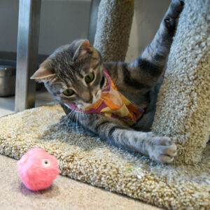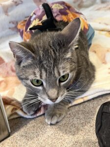 In the meantime, we allow Regina to spin her dreams and practice her ball batting skills with gusto. No one at Tabby’s Place has the heart to tell her there may not be a singles’ Olympic ball batting event at the Paris Games. Frankly, it would be of little consequence to her anyway, as our littlest competitor has become quite taken with beach volleyball and is heartily convinced, she can spike a ball with the best of them. Playing on sand is certainly no problem for a cat of her caliber – and no one (and I mean no one) looks cuter in a “skoot skirt.”