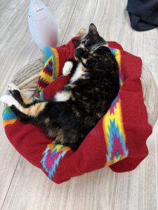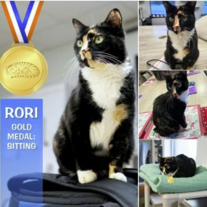 To keep herself busy through the winter doldrums, Rori decided to compete in the Olympics (that is, the Tabby’s Place Olympics). She participated in the utmost challenging event of ‘Sitting.’ Rori was by far the very best and took the Gold! As you can imagine, there was a lot of hard work put into preparing for the competition. She shared a little of her experience with us, so here it is in her words: