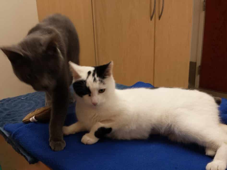 On February 14, 2014, my very first special needs sponsor update was created. My correspondent took her responsibility seriously, and we spent a lot of time together getting to know each other. Back then the special needs suite was the current kitten room. It is funny, I used to look into the lobby and wish that one day I could live there. Wow, 6 years later, I am a very lucky lobby cat resident. Rose trivia, who was my BFF snuggle buddy in 2014? Drumroll please, it was none other than the handsome gray cat named Boom.