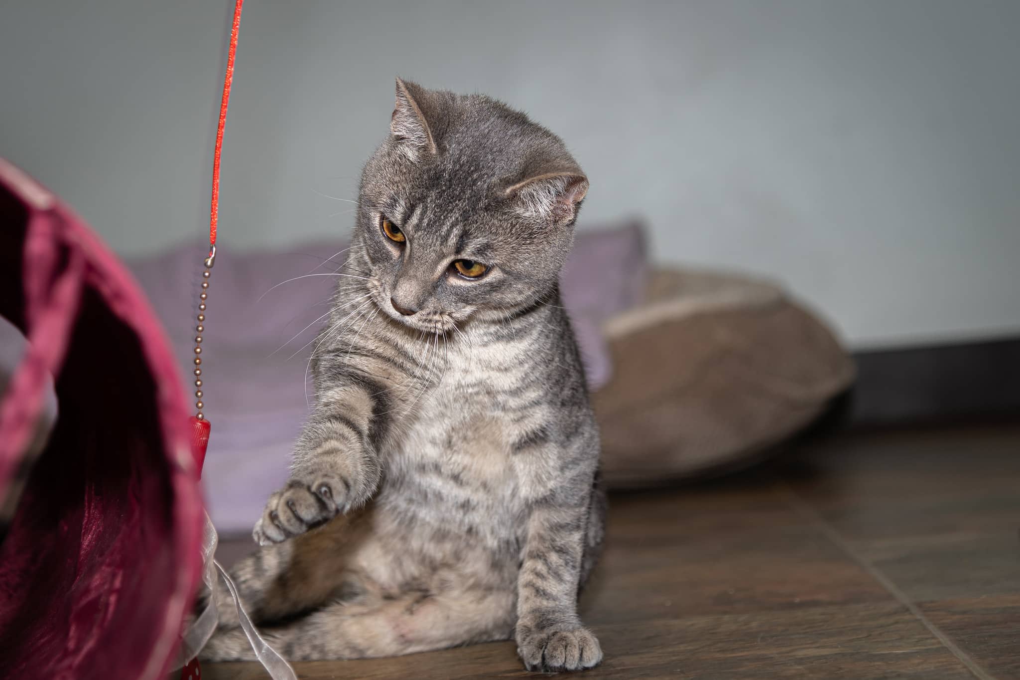 We’ve learned this month that scooting on the community room floor leads to a bit of a mess. While June gets the occasional fur mat from sliding through something sticky, Scoots is constantly grimy on the underbelly. She tries to keep herself tidy, but she moves around much more than June. June will curl up on a bed while the floor is being mopped, but Scoots will cruise all over the wet floor. Wet fur is much more likely to pick up dust and dirt than dry fur. And so, Scoots is perpetually in need of a belly bath! She does not appreciate the assistance we try to provide in this department. She grumbles her complaints but easily forgives.