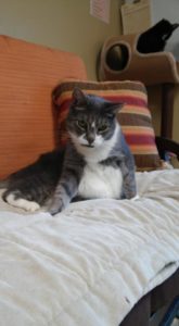 I was a bit tired out the other day when my shift was over and thought I would sit with our friend for just a bit before leaving for the day. He came up on the sofa and stretched out next to me. His coat is very soft and plush; another volunteer mentioned his bib and matching kid-gloves, all so very white. We agreed that Shifty is looking so much better than he did during early spring months. Perhaps it is the increased activity of the room, with limited volunteers coming and going again, and the additional attention he is receiving. He sure is receptive to that, as well as his daily treats that he so loves.