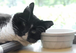 Otherwise, I continue my professional lounging in the Lounge (so aptly named), in my sunny window, with my big belly usually facing out for sun rays and human pets. My health is good, and I’m a happy guy.