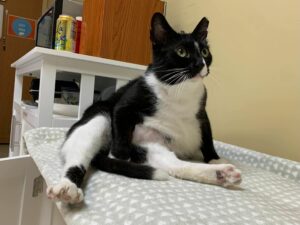 “The Ham” is such a joy to all who enter the lounge, and continues to be his usual happy self these days. He’s taking advantage of watching the autumn season bloom outside his window, while also ensuring he makes good use of other cozy places—cat trees, tops of cabinets, and the like.  Napping places abound in the lounge, and he is not one to turn down any opportunity to claim one.