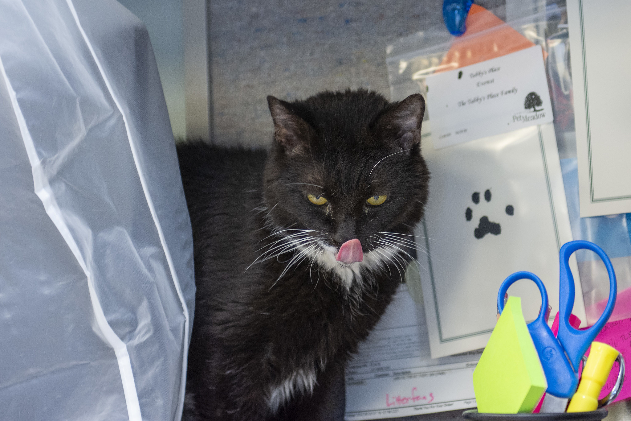 Tux had an unfortunate medical event unfold this month. He developed an anal gland abscess and was immediately started on antibiotics which, in turn, quickly upset his GI tract. The medical team stopped the antibiotics and adjusted his other medications accordingly. He’s feeling much better now, thanks to prompt attention and your love and support!