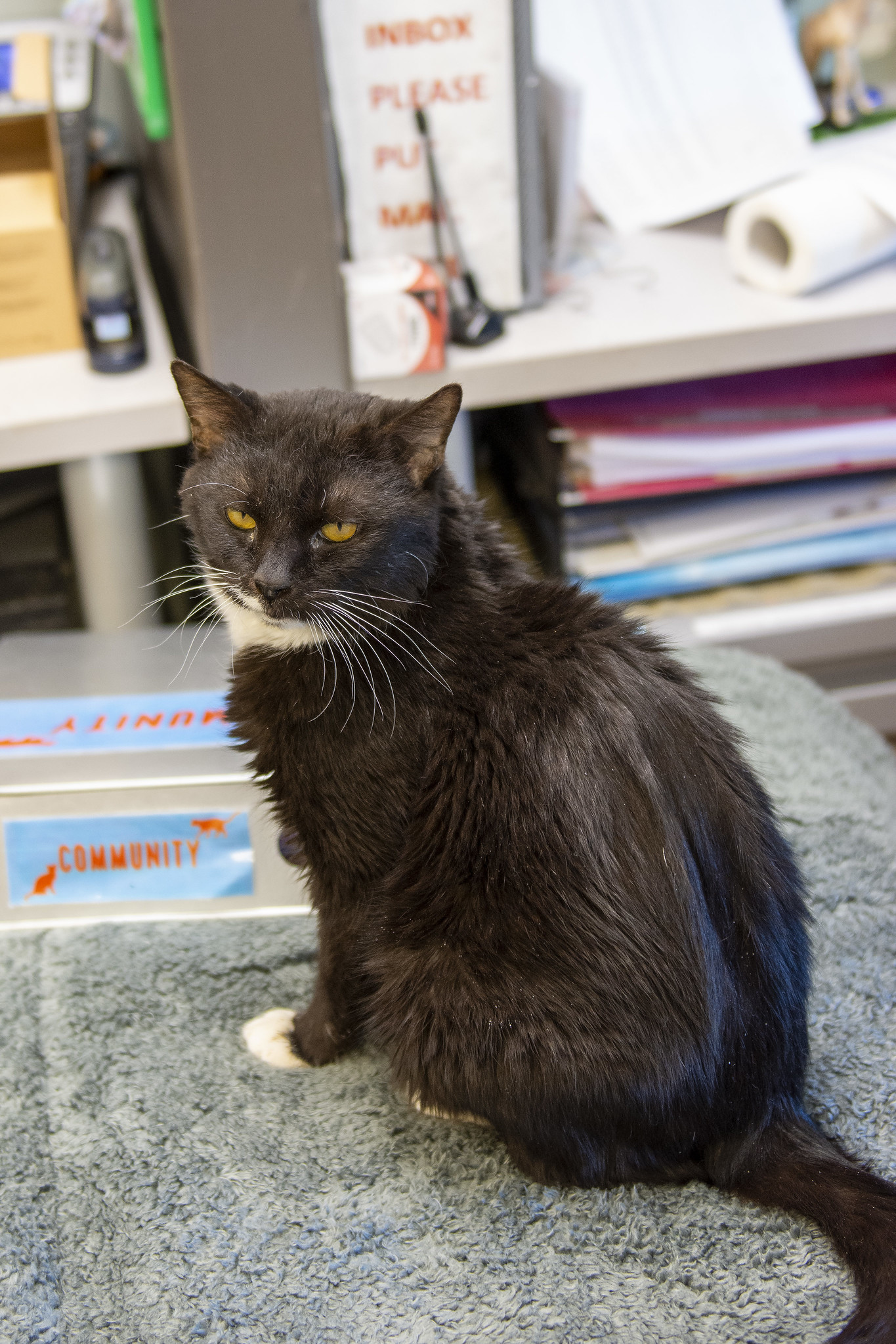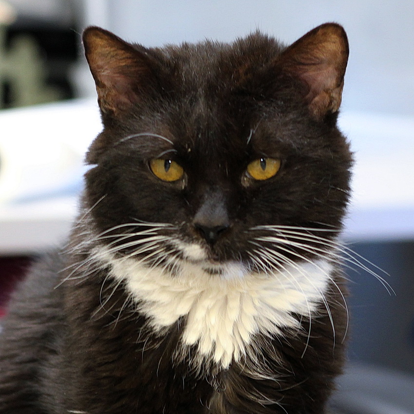 In accordance with CDC recommendations and internal policies, masks are now optional inside Tabby’s Place. After nearly two years, Tux can once again gaze into the smiling faces of all of his human friends that come to visit and work at Tabby’s Place. I’ve heard several volunteers say how wonderful it has been to snuggle their faces into kitty fur.