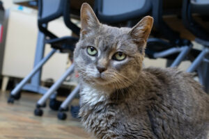 Tux has so much to be grateful for this year, and it all begins with your love and friendship! Tux is grateful for every hand-delivered meal (even if he doesn’t eat it right away). He is grateful for each visit with his human and feline friends. Tux is grateful that his dear friend Patches continues to thrive in her forever foster home. And, this month, Tux is grateful that his beloved Community Room is no longer under ringworm quarantine precautions.