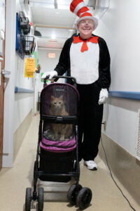 P.S. Don’t be alarmed by the reference to the strange, free-roaming feline. On Saturday, March 7th, Tabby’s Place hosted a special Paws to Read event in association with Read Across America Day. Our very own volunteer, Cat in the Hat, was on the scene.