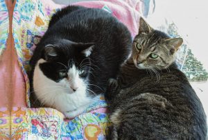 Pixie may have found her forever home, but her window box did not remain vacant for long. Window real estate is at a premium in the Community Room, and Puzzle and Sammy were pre-approved with a substantial down payment. New signage by the window box announced what many of us already knew– “Pixie’s Box” was now “Puzzle and Sammy’s Place.”