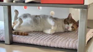 It would be one thing if this were a rough suite. You can’t blame a cat for being cautious around unsavory characters. But Suite F happens to house the most savory characters at Tabby’s Place.