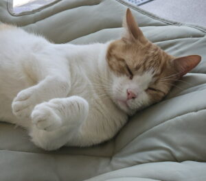 Trifecta‘s default setting is “lovestruck.” He is a certified therapy cat whose atoms are 49% apple pie and 51% poetry. He is feelier than Mr. McFeely. Somewhere in heaven, Mother Teresa, Gandhi, and Mr. Rogers (human) are talking about how their one regret is that they were not more like Trifecta.