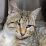 But her eyes disclose what meows never mention.
