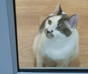 Meanwhile, in yet another suite, the lovely yet timid Magda shudders at the thought of being forced indoors. She too has quite a mouth on her when it is made clear that daily food deliveries will be held solely within the main suite, along with everything else…and every single other cat in the suite. While we humans are celebrating some joyous, recent adoptions, Magda is suspicious of the qualities of her newest suitemates. Will they respect a tuxedo’s need for decorum? Will they be gadabouts that baldly and boldly get in her way, especially when her way across the hallway is blocked for her own well-being?