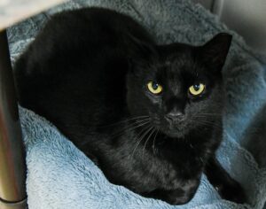 The colorfully named, slaphappy crew in Suite D has recently been joined by a solid black cat. Lucky day! A 5-year-old male showed up at a job site, but he was ill suit-ed to the task. Instead, Midnight has been suite-d where he can join the good fight of proving that retroviruses are undeserving of cheeky, cheerful, charming names…or even a name that elicits images of the darkest skies and silky fur in one swell foop. Such names are reserved for the champions who battle to demonstrate that FIV has as few teeth as a cat that has no teeth.