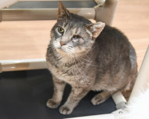 On the other hand, Marble Rye seems entirely disinterested in having anything to do with any human. Socialization is strictly feline-a-feline. Marble Rye is a fairly young, cat’s cat, who would rather go unseen by us. A good samaritan brought him to Tabby’s Place for his own welfare. It is now up to us to give him the time he needs to take advantage of this fresh start.